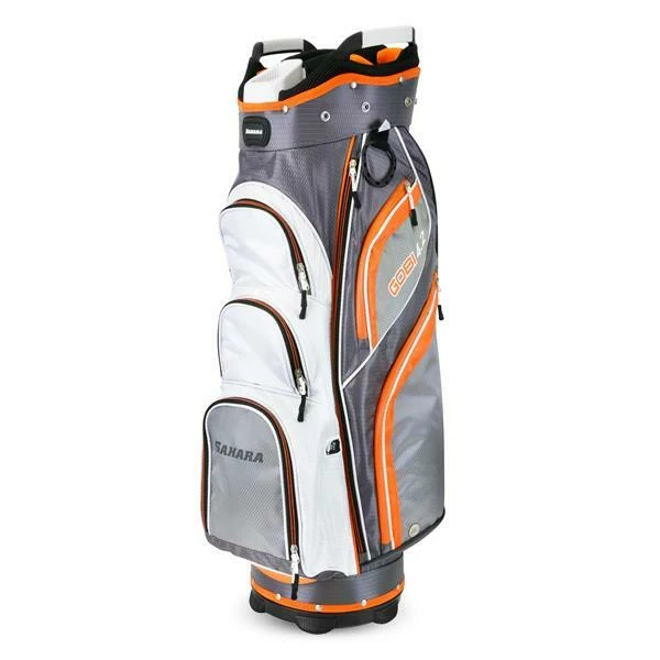 With a roomy 9.5 inch top, padded shoulder strap, 14 graphite-friendly full length dividers, front putter well and 9 zippered pockets there is abundant storage to secure and protect all of your equipment. Additional handy features include integrated dual top lift handles, towel ring, pen sleeve, Velcro glove attachment, umbrella holder, scorecard sleeve and rain hood.