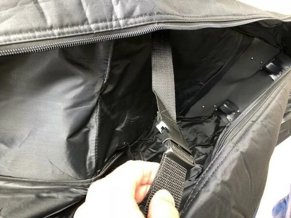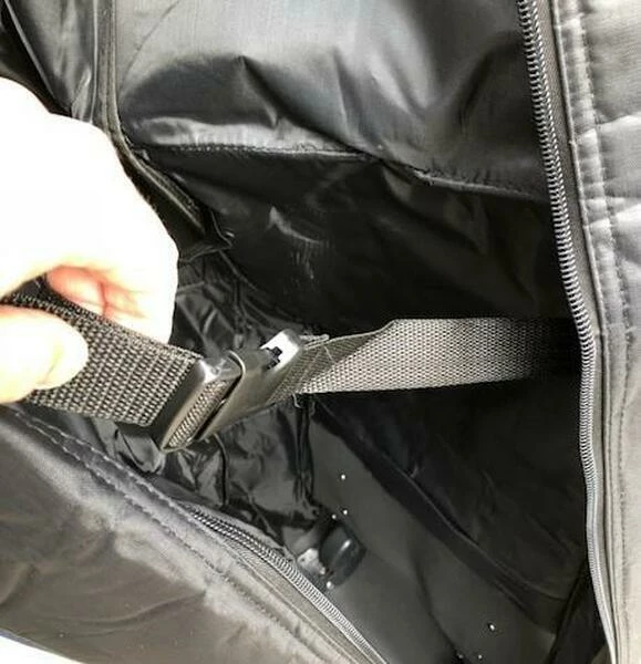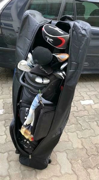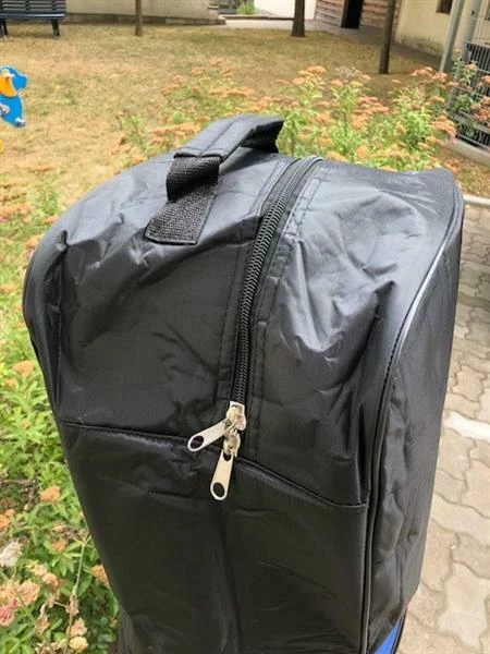 Travelcover with Inline-Skate-wheels; strong upholstered head part and a practical bag outside. added a clip and a carrying belt. Now the next trip can come!